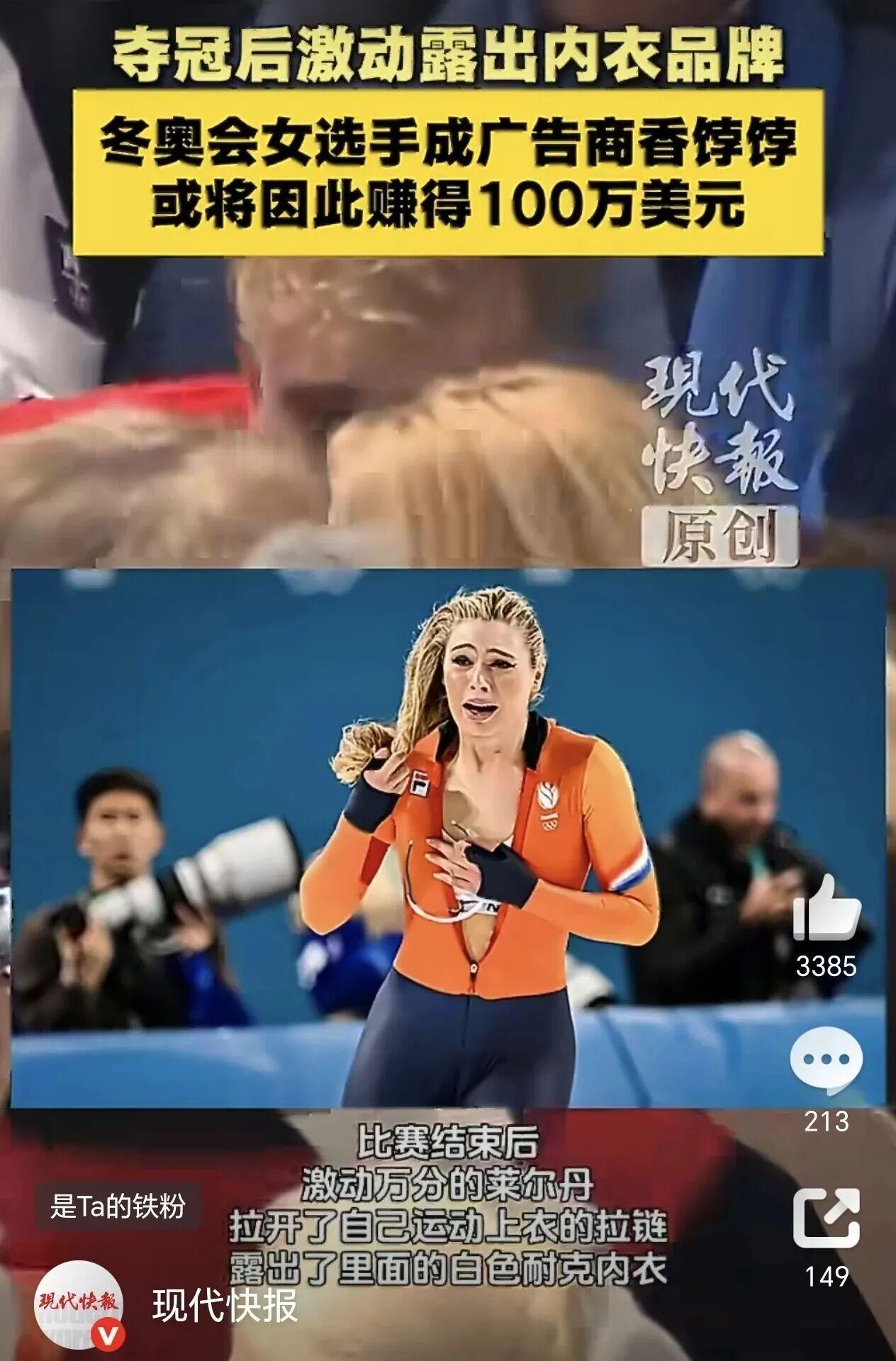 米兰冬奥会上,荷兰速滑名将尤塔·莱尔丹的一个自然举动,意外引发体育营销圈的广泛讨论。这位27岁的选手在打破奥运纪录、夺得女子1000米速滑金牌后,情绪激动之下拉开国家队赞助商FILA的橙色紧身服拉链,内里的耐克运动内衣意外入镜,被镜头捕捉后迅速走红全球。